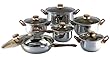 Celebrity chef Emeril Lagasse kicks it up another notch with this stainless-steel cookware collection. This 18/10 Stainless Steel cookware has a high performance aluminum and copper bonded base that ensures fast heat delivery. The handles are ergonomically designed for balance, control and comfort. For added conveniece, internal measurement marks are on all the sauce pans and stock pots. The sauce pans have straining lids and precision pouring spouts with flared rims for clean pouring. This 10 piece set includes 8" fry pan, 10" fry pan, 1.5 and 3 quart sauce pans with lids, 3 qt. saute pan with lid and 6 qt. tall stock pot with lid.Check its out related products of Emeril Stainless Steel 10 Piece Cookware Set